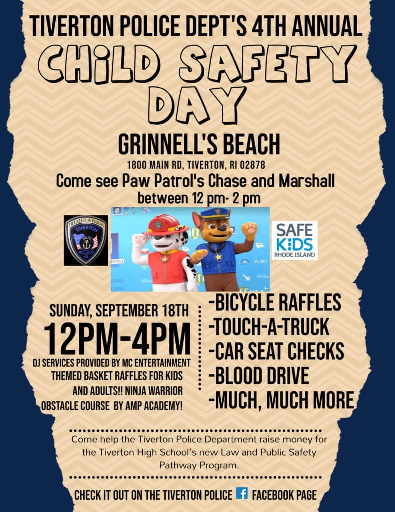 TIVERTON — Chief Patrick Jones and the Tiverton Police Department are pleased to invite the community to the Fourth Annual Child Safety Day.