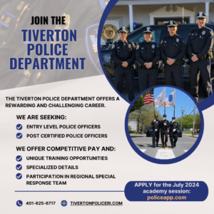 Chief Patrick Jones is pleased to announce that the Tiverton Police Department is seeking qualified candidates for open police officer positions within the department.